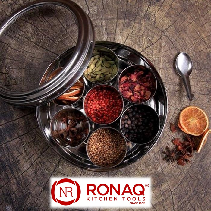 - The round shaped stainless steel spice box/Masala box, is easy to clean and upkeep. The material is hygienic and odorless.